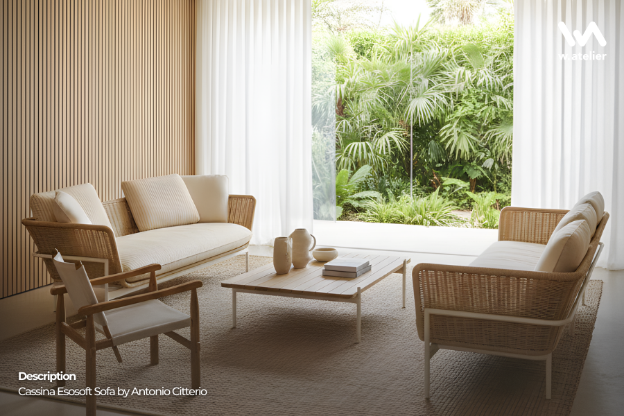 To complement this aesthetic, consider a statement lounge piece like the Cassina Esosoft Sofa placed in the living room to anchor the seating area with both comfort and sculptural presence.