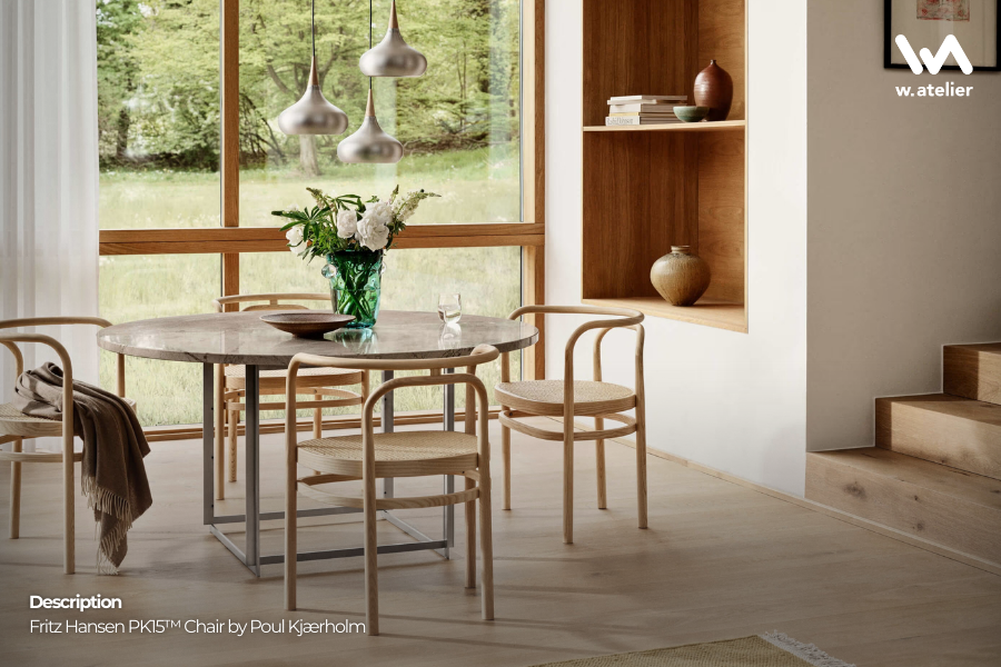 A timeless accent here is the Fritz Hansen PK15™ Chair, ideal as a reading nook perch or a dining seat that brings sculptural elegance without visual weight.