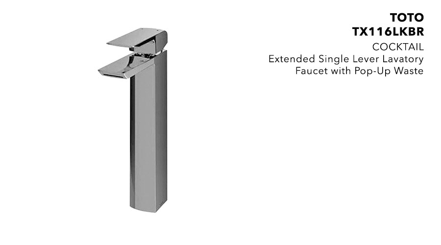 The TOTO COCKTAIL Extended Single Lever Lavatory Faucet with Pop-Up Waste exemplifies understated elegance. Its extended, sculptural form adds a sense of sophistication to the vanity area, while its smooth lever action and concealed waste system reflect the same precision and craftsmanship found across TOTO’s sanitary range.