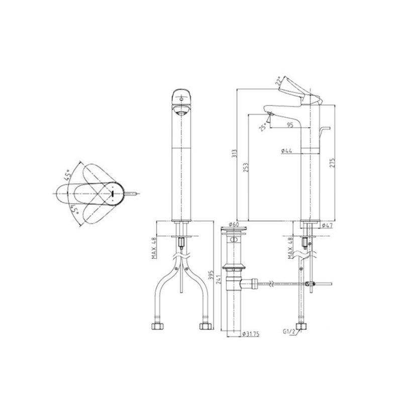 Extended Single Lever Lavatory Faucet with Pop-up Waste