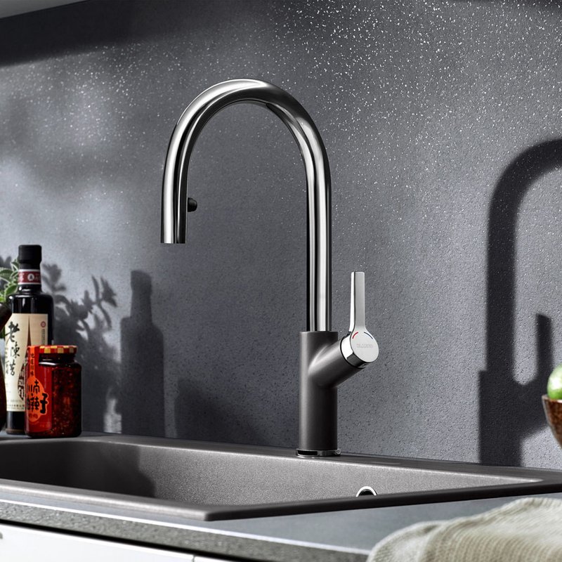 Material : Silgranit-Look Dual Finish Black/Chrome