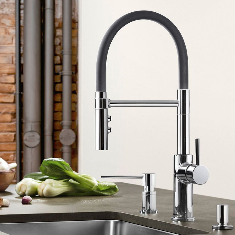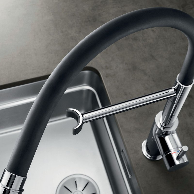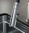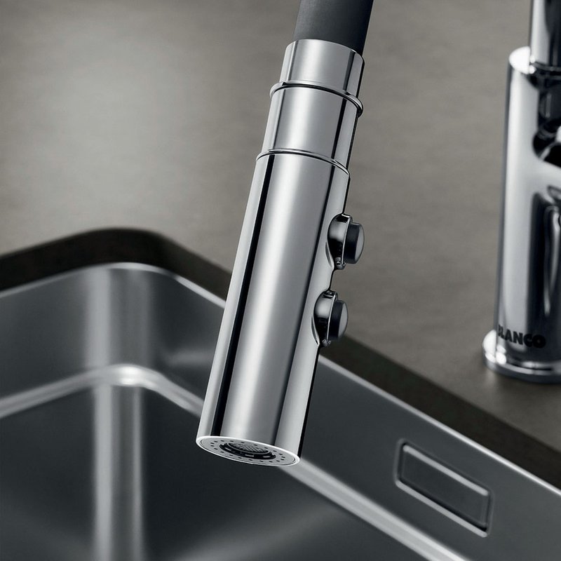 - Dual spray with integrated flow stop: easy switch from aerated stream to powerful rinse spray