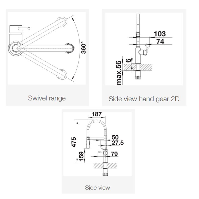 Dimensions | : 360° swivel range |