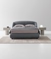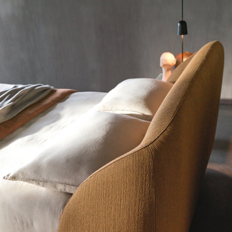 Like a sweeping wave, a generous curve defines the headboard of a sculptural bed distinguished by soft shapes. Providing both comfort and intimacy, Pacific outlines a welcoming place to rest and feel cocooned. The bed extends and completes the namesake collection comprising a sofa and armchair.
