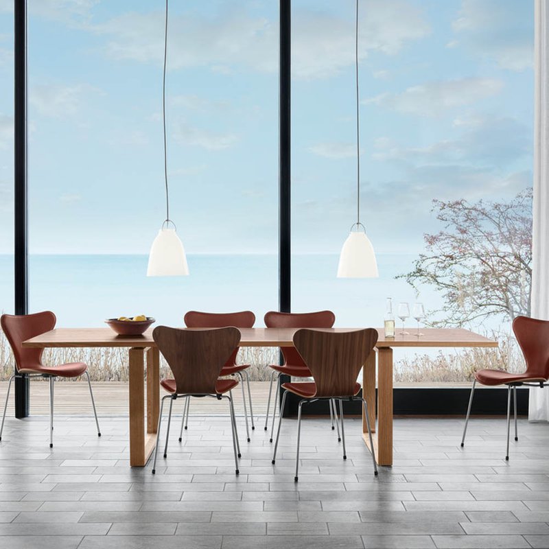 The Series 7™ chair is an icon in modern furniture history, designed by Arne Jacobsen in 1955. Its unique shape is timeless and incredibly versatile, displaying character without overpowering the eye. The chair is made from 9 layers of pressure moulded veneer for strength, flexibility and durability despite its slender form. This is the most popular design within Fritz Hansen’s chair collection.