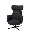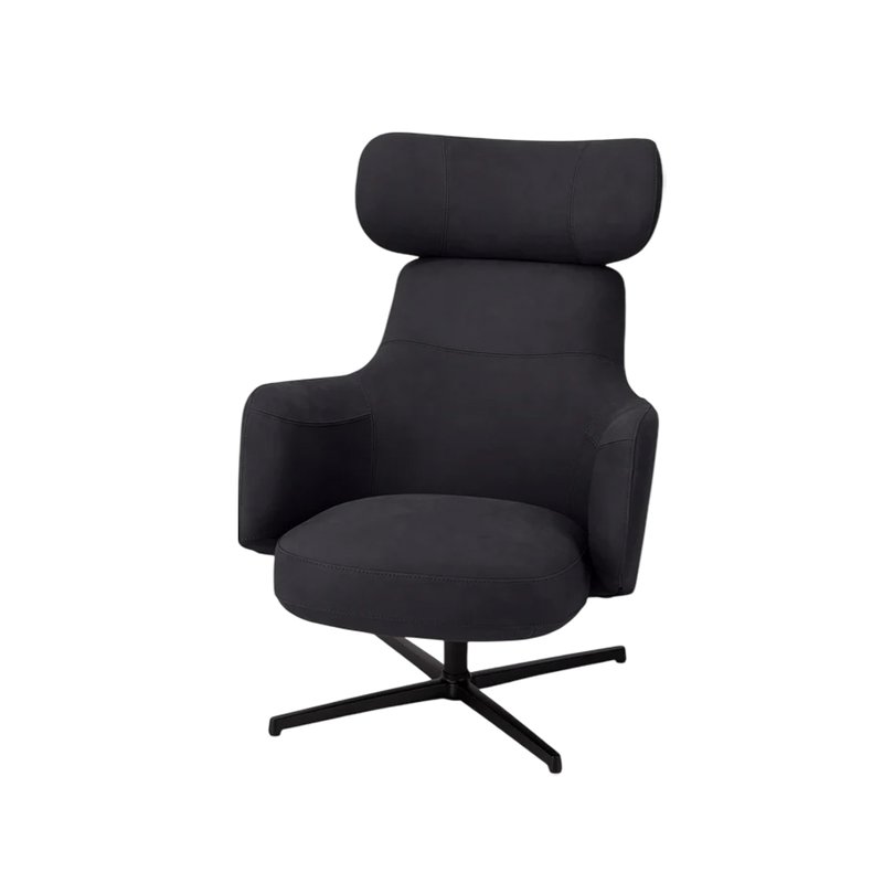 Cuper offers a modern reinterpretation of the traditional bergère model, with an elevated design and an innovative tilting mechanism that enables customizable reclining of the generous headrest.
