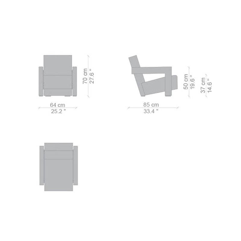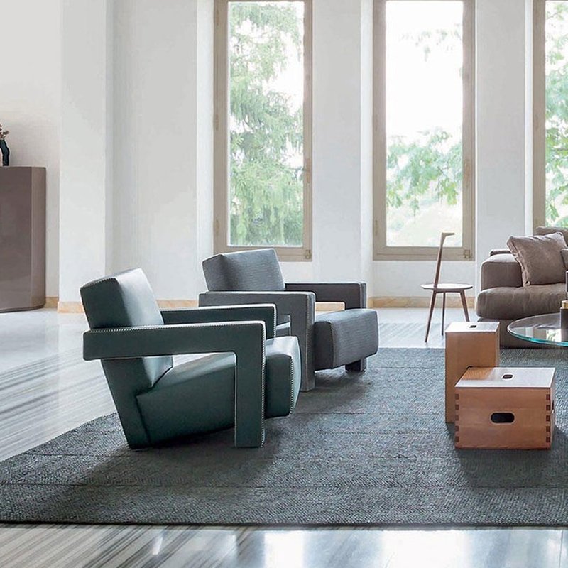 Gerrit Rietveld came up with the design for the Utrecht armchair in 1935 while working for the Metz & Co. department store in Amsterdam, where his brief was to make a chair for serial production. Taking market needs into account, while privileging a comfortable and relaxing experience, led to the elements of the chair being treated as separate units. As a consequence, the chair became an icon of both the Neoplastic movement, and of Rietveld’s experimental vision.
