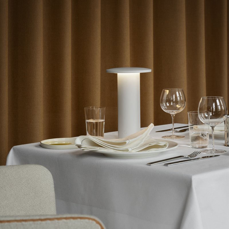 Solae is a sculptural portable lamp by Cecilie Manz that blends powerful, functional light with clean, architectural form. Designed for versatility and ease of use, its distinctive oval base and circular top offer intuitive directionality and a tactile, comfortable grip. Solae delivers three-step dimmable lighting—from full brightness to warm ambient glow—and is crafted in durable aluminium for indoor and outdoor use. With its considered proportions and mobile form, Solae brings thoughtful illumination to both residential and commercial settings.