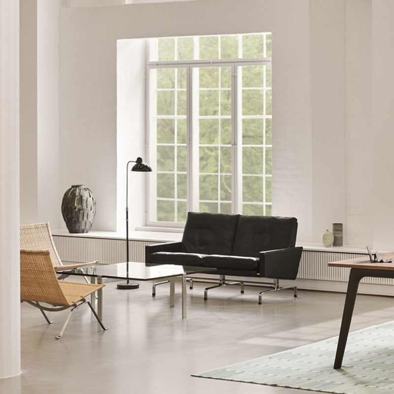 The PK31™ chair and sofa series is a prime example of Poul Kjærholm’s ability to work with exquisite materials and minimalism. In the search for the ideal form, Kjærholm created the PK31 – a fusion of elegance, luxury and comfort. The PK31 series is available as an armchair and a 2- or 3-seater sofa and features a matt chromed spring steel frame. With its ingenious modular construction, the 2-seater PK31/2 radiates industrial strength and durability while providing perfectly proportioned comfort through its beautifully upholstered seat and backrest in leather and canvas, clearly illustrating Kjærholm’s unwavering belief in the very highest standards of craftsmanship - down to the very last stitch.