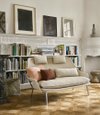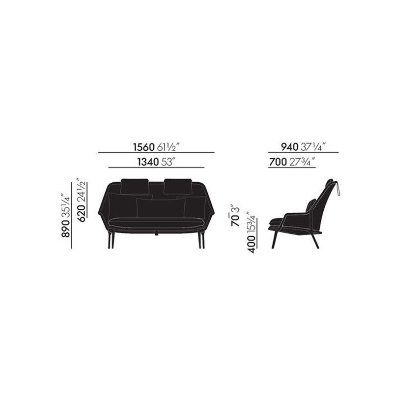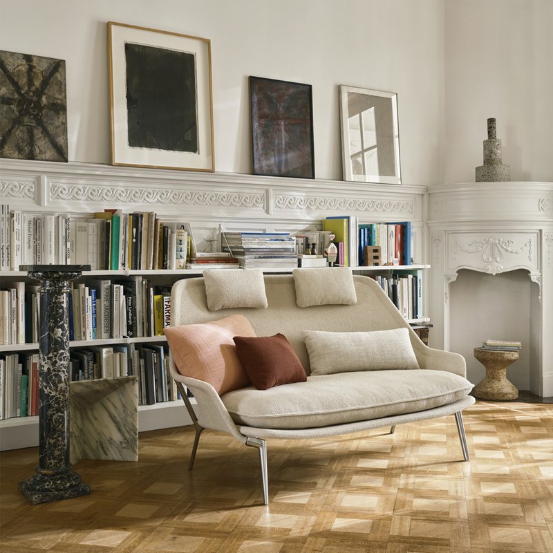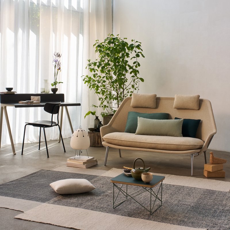 The smallest of Vitra's sofas, the Slow Sofa is designed with Flocca fabric stretched over a tubular steel frame, comfortably accommodating two people despite its compact size. Loose seat cushions, two neck cushions and three individually selected back cushions from the Vitra Cushions collection ensure additional soft comfort. This makes the Slow Sofa a favourite spot to escape from the hustle and bustle of everyday life. The Slow Sofa is light in weight and can therefore be easily picked up and moved around.